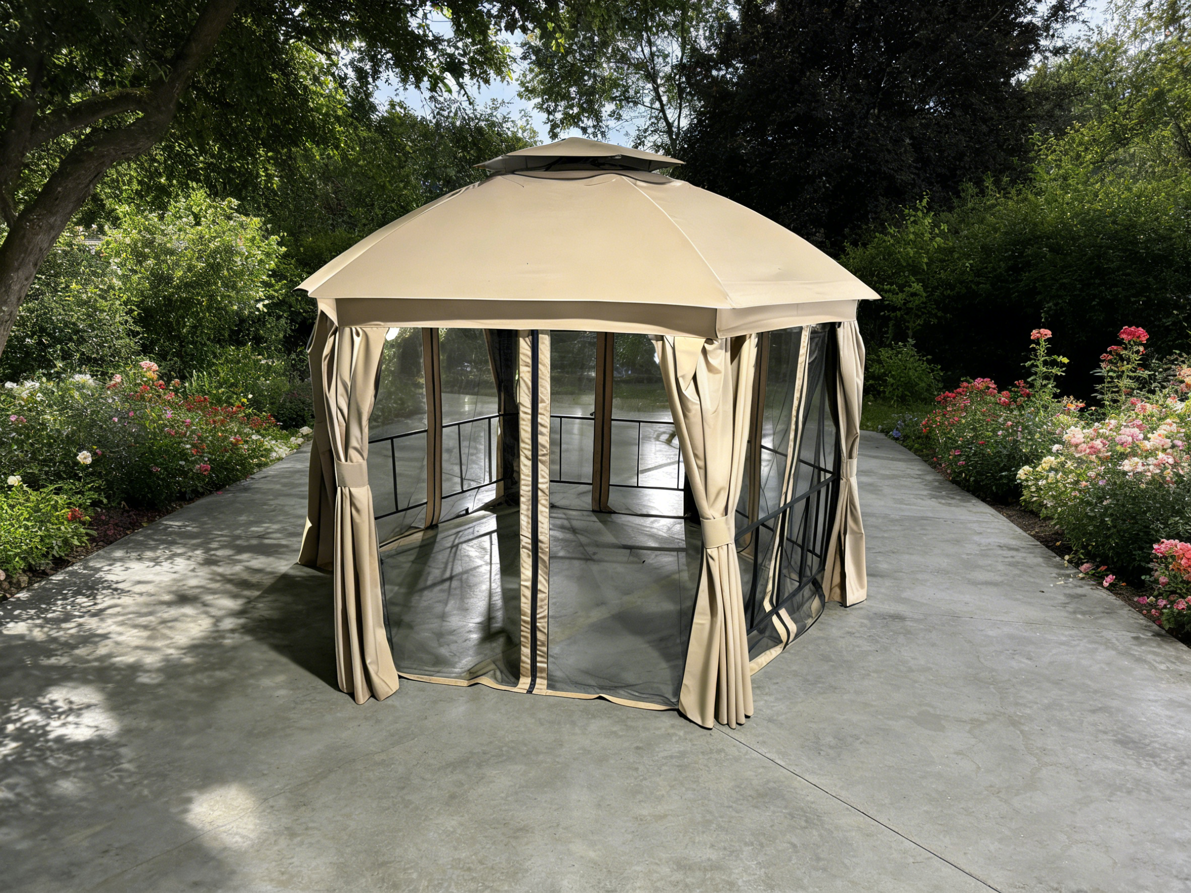 Шестиугольная садовая беседка с москитной сеткой SAN-MARCO, бежевый